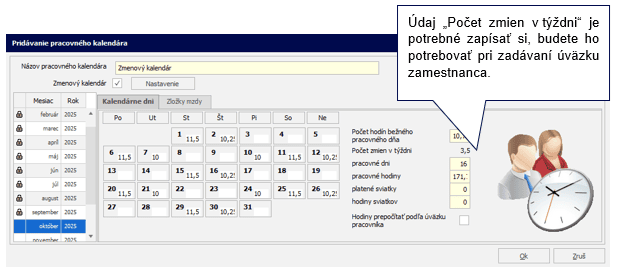 Počet zmien v týždni sa môže v jednotlivých mesiacoch mierne líšiť. Ak nenastane výrazná zmena hodnoty, nie je potrebné v úväzku zamestnanca tento údaj počas roka meniť.