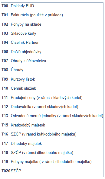 - pohyby v sklade (príjemky/výdajky) a iné.