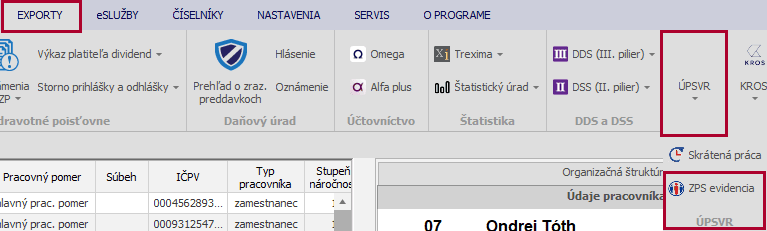 V programe OLYMP je zapracovaný export zamestnancov so zdravotným postihnutím vo formáte .csv, ktorý nájdete v menu Exporty – ÚPSVR – ZPS Evidencia.