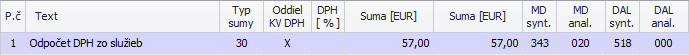 V programe OMEGA zaúčtujeme odpočet DPH pri registrácii v internom doklade automatickým účtovaním ID – Nový doklad, typ sumy 30 – R30 Odpočet dane pri registrácii §55, účtovanie 343.000/518.xxx.