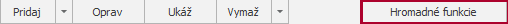 V zostave Biznis/Profi/Profesionál máte možnosť využívať Hromadné funkcie, ktoré umožňujú hromadne pridávať alebo upravovať: Zložky mzdy, Zrážky, Stredisko, Zmeny pracovnej zmluvy, zadávanie neprítomnosti, dovolenku.