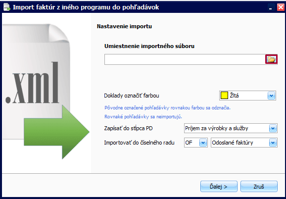 - Ak súbor začína textom „pohladavky“, bude sa importovať do zoznamu pohľadávok