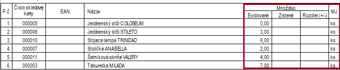 - V prvom kroku Vytlačte podklad k inventúre skladu, do ktorého zapíšte skutočne zistený stav na sklade a prípadné rozdiely.