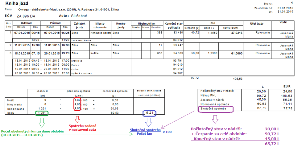 Po vytvorení uzávierky je možné vytlačiť Knihu jázd (Firma – Uzávierka – Jázd – Tlač). Údaje je možné využiť v účtovníctve v prípade potreby účtovania interným dokladom napríklad vyúčtovanie preddavku zamestnancovi na pracovnú cestu, paušálne výdavky PHL a podobne.