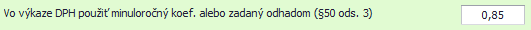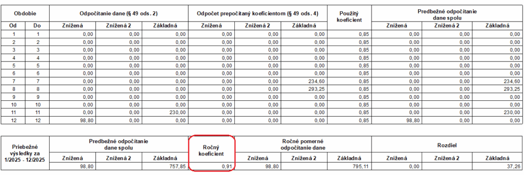 Program prepočíta odpočet DPH v priebehu roka s predbežným koeficientom. Na konci účtovného obdobia je potrebné vypočítať koncoročný koeficient, ktorým sa opäť prepočíta odpočet DPH, na ktorý má platiteľ DPH len pomerný nárok.