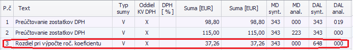 Aby sa odpočet DPH správne prepočítal, používame typy súm s dodatkom „k“. Pri týchto typoch súm sa DPH počas roka prepočítava predbežným koeficientom.