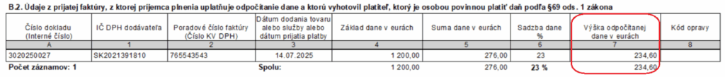 KV DPH: doklad bude uvedený v časti B.2., v stĺpci 7 je pomerná časť odpočítanej dane.