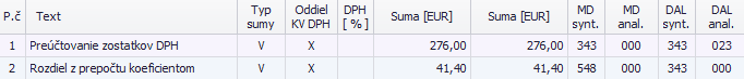 - preúčtovaním zostatkov jednotlivých analytický účtov pre uplatnenú DPH na spoločný účet 343.000,