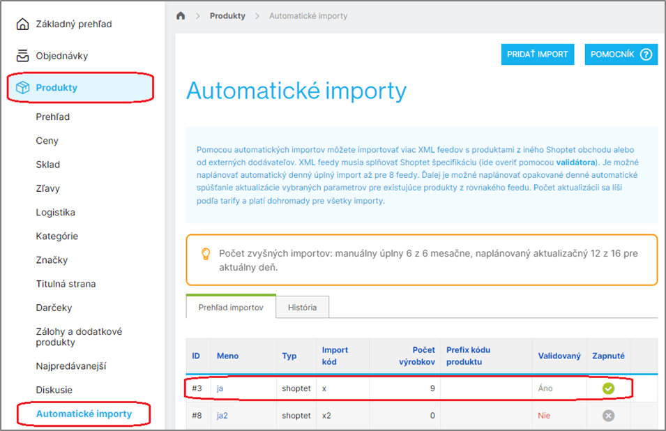 Prejdite späť do automatických importov vo vašom admin Shoptet e-shope a opäť rozkliknite váš aktívny automatický import.