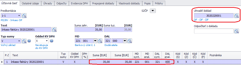 1 PD/BV – Inkaso OF, DD, účtovným zápisom 221.xxx/321.xxx.