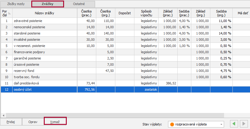 Spôsob výpočtu necháte programom prednastavený zostatok. Jedná sa o zostatok čiastky, po odpočítaní ostatných prípadných zrážok vo výplate zamestnanca.
