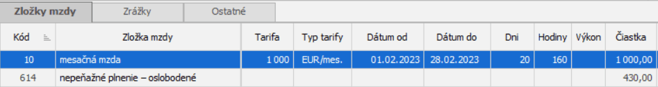 Zamestnanec dostal vo februári vyplatené nepeňažné plnenie vo výške 430 eur zadané zložkou mzdy 614_nepeňažné plnenie – oslobodené. Zamestnávateľ uplatňuje oslobodenie podľa § 5 ods. 7 písm. o) ZDP aj na príspevky, ktoré odvádza na DDS v sume 50 eur mesačne. Ako to zadať v programe?