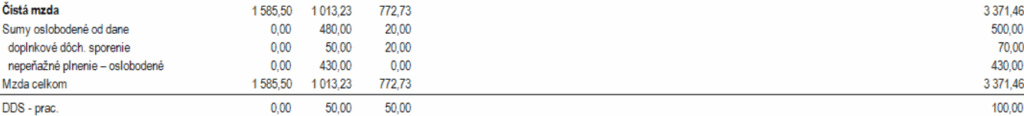 Program pri výpočte sleduje, či poskytnuté plnenie nepresiahlo súhrnne 500 eur To znamená, že odvody na zdravotné poistenie budú vypočítané z vymeriavacieho základu 1 030 eur (hrubá mzda 1000 eur + 30 eur zvyšok príspevku na DDS, ktorý už nemôže byť oslobodený).