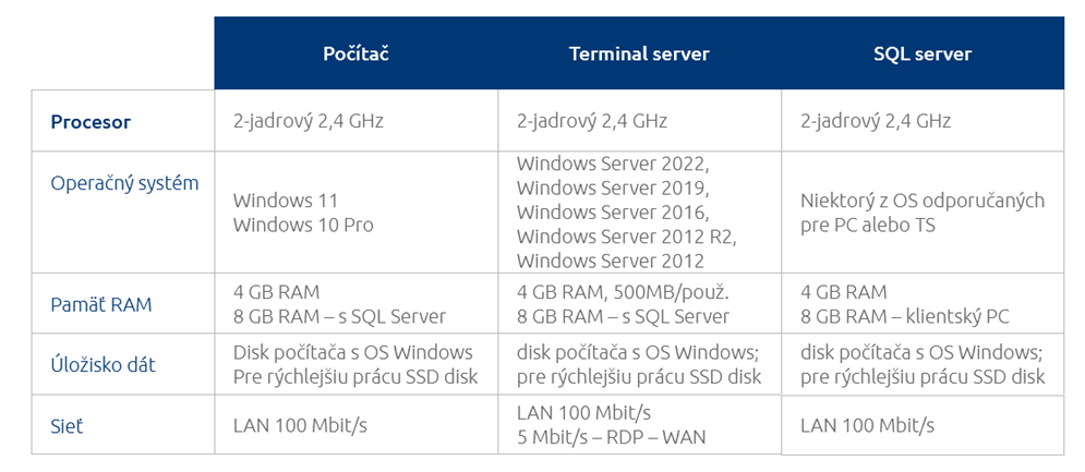Pre korektné spustenie a fungovanie programu OMEGA od je potrebné dodržať odporúčanú konfiguráciu Vášho počítača.