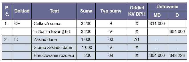 Faktúru zaúčtujeme v okruhu OF – odoslané faktúry, pričom ručne upravíme účtovnú časť nasledovne: