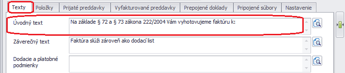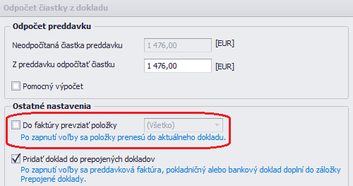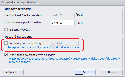 Voľbu Do faktúry prevziať položky necháme vypnutú (položka už bola pridaná ručne).