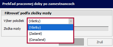 - Všetky – zobrazia sa všetky zložky mzdy zadané u zamestnanca vo výplate v danom mesiaci,