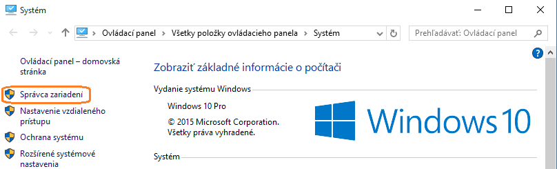 2. V ľavej časti vyberieme Správca zariadení. Ak sa zobrazí upozornenie pre povolenie na túto akciu, potvrdíme ho.