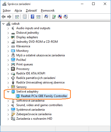 3. Zobrazí sa zoznam všetkých zariadení v počítači. Rozklikneme skupinu Sieťové adaptéry.