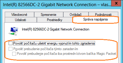 6. Nastavíme sa na záložku Správa napájania a vypneme „Povoliť počítaču ušetriť energiu vypnutím tohto zariadenia“