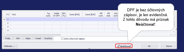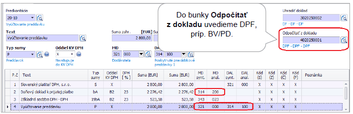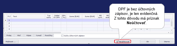 - 25 DPF – Nový doklad – na zaúčtovanie tuzemskej došlej preddavkovej faktúry.