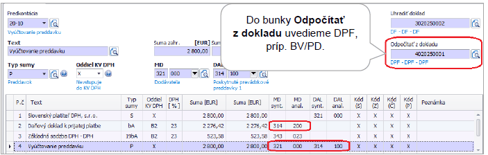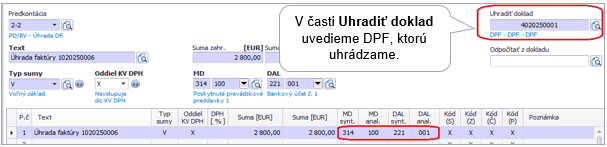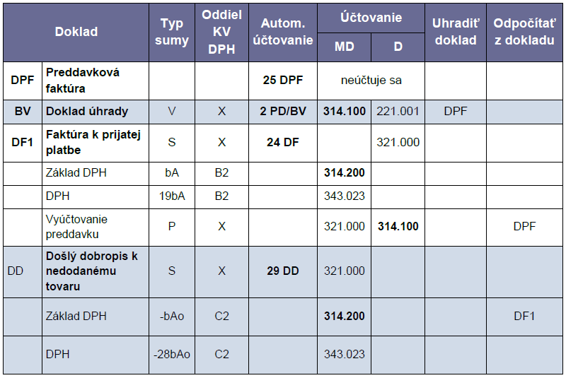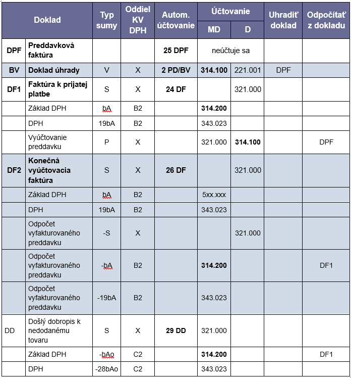 - 26 DF – S vyfaktur. preddavkom – slúži na účtovanie DF za tovar/službu, na ktorú bol zaplatený preddavok.