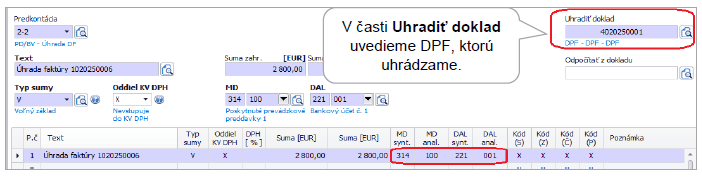 3. Zaevidovanie faktúry k prijatej platbe