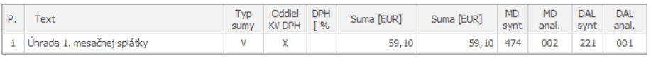 8. Zaúčtovanie 2. mesačnej splátky (marec)