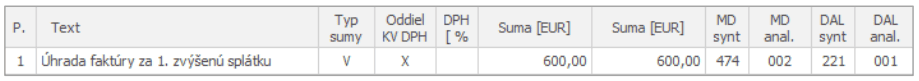 - Zaúčtovanie 1. zvýšenej splátky