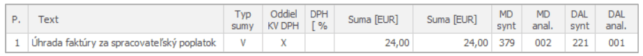 2. Zaúčtovanie spracovateľského poplatku za uzatvorenie LZ