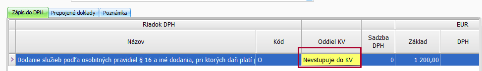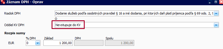 - Vo formulári DPH na záložke Zápis do DPH zmeňte oddiel KV DPH kliknutím na Oprav. Oddiel KV DPH vyberte Nevstupuje do KV,