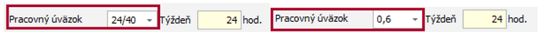 Koeficient úväzku je 0,6. Zamestnanec bude pracovať 24 hodín týždenne tzn. 40 x 0,6 = 24. Vypočítaný úväzok zadáte do pracovného úväzku zamestnanca.