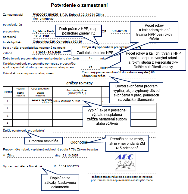 Potvrdenie o zamestnaní sa dá tlačiť iba v mesiaci ukončenia pracovného pomeru.