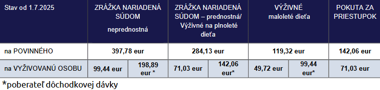 Nepostihnuteľné sumy pre výpočet exekučných zrážok od 1. 7. 2025