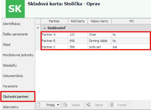 Po dokončení importu sa nám v kartách doplnia údaje o dodávateľoch v záložke Obchodní partneri.