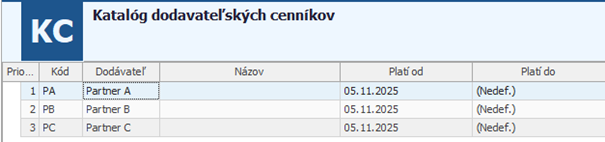 V záložke Ceny – Katalóg dodávateľských cenníkov máme zobrazené vytvorené cenníky bez názvu.