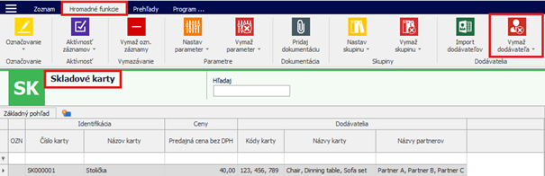 Okrem importu viacerých dodávateľov na skladové karty sme do hromadných funkcií nad skladovými kartami zapracovali aj funkciu Vymaž dodávateľa.