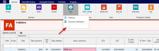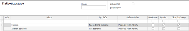 Pre vyššie uvedené nastavenie vstúpime do zoznamu tlačových zostáv podľa obrázka.