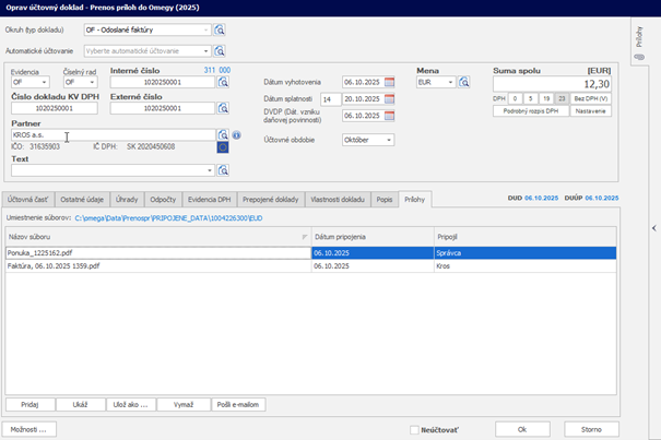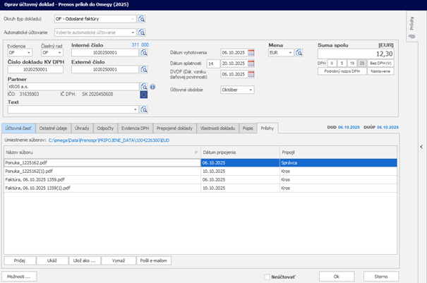 Zosynchronizovaný doklad má v Omege prílohy v záložke Prílohy.