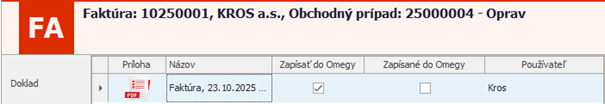 Vďaka týmto stĺpcom rýchlo zistíme, ktoré doklady sa majú zapísať do Omegy, či už boli zapísané, a taktiež zistíme názov Používateľa, ktorý prílohu vytvoril.