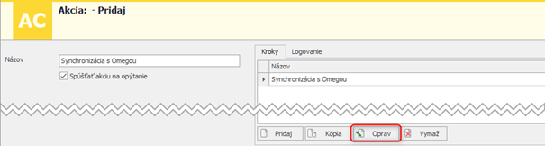Kliknutím na tlačidlo Oprav sa priamo dostaneme do nastavenia akcie, kde si zaklikneme možnosť Exportovať prílohy a uložíme toto nastavenie.
