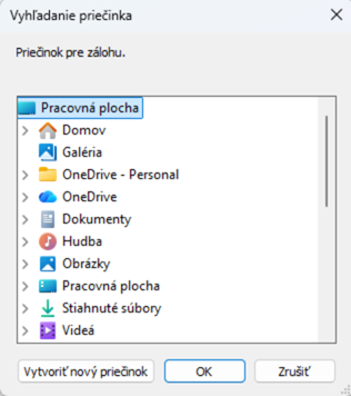 Následne sa otvorí okno, kde je potrebné zvoliť priečinok, kde sa má záloha databázy uložiť.