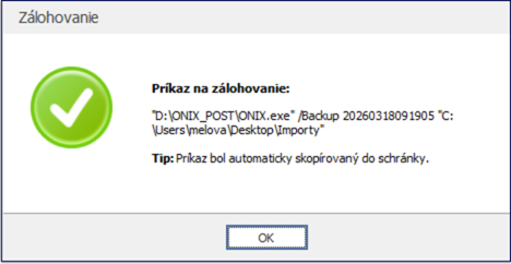 Zálohovanie programu ONIX