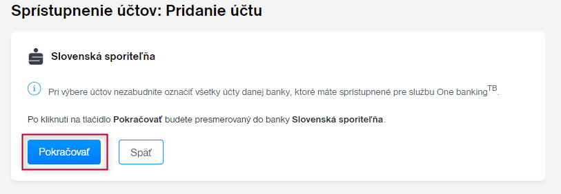 - Zobrazí sa vám tabuľka o sprístupnení účtov. Zvolíte možnosť Pokračovať.