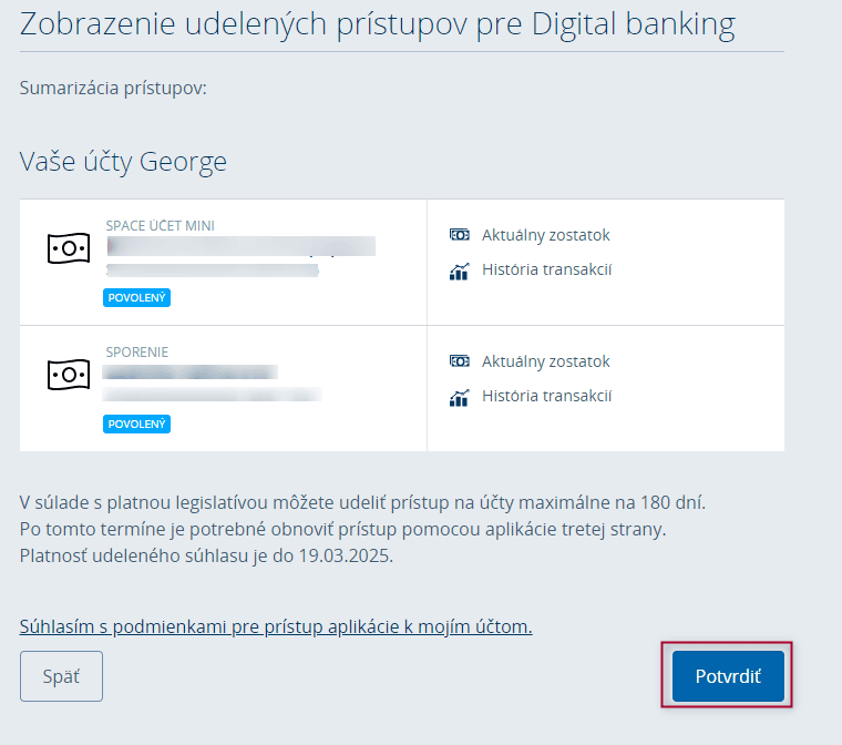 - Udelený prístup v internetbankingu ešte raz potvrdíte.