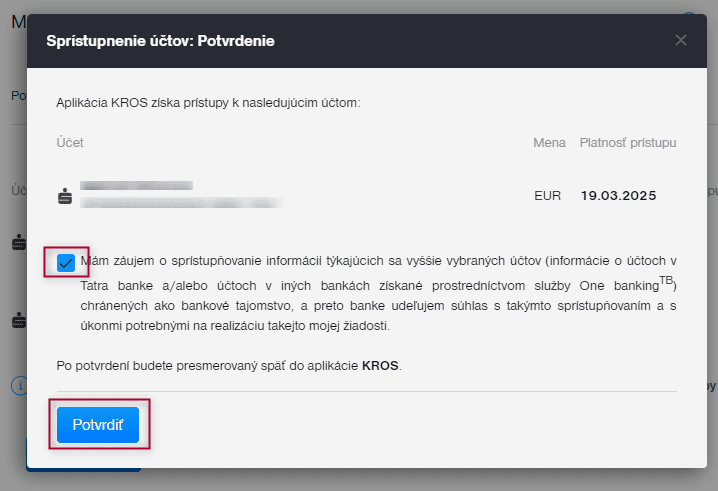 V inej firme KROS Fakturácie už neprechádzate do internet bankingu, stačí zakliknúť požadovaný účet na strane Open API Tatrabanky, nakoľko Tatra banka už prístup k daným účtom má.
