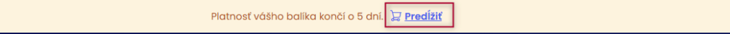 Končí vám platnosť balíka? V tomto prípade vám bude aplikácia 10 dní pre koncom platnosti balíka zobrazovať hlášku : Platnosť vášho balíka končí o aktuálny počet dní. Pre obnovu prejdite cez tlačidlo Predĺžiť