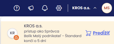 Pokiaľ ste v minulosti dané upozornenie vypli, na možnosť Predĺžiť prejdete po kliknutí na názov firmy v pravom hornom rohu aplikácie.