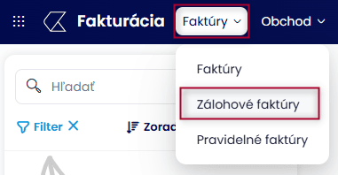 - krok: Vystavenie zálohovej faktúry cez záložku Faktúry – Zálohové faktúry