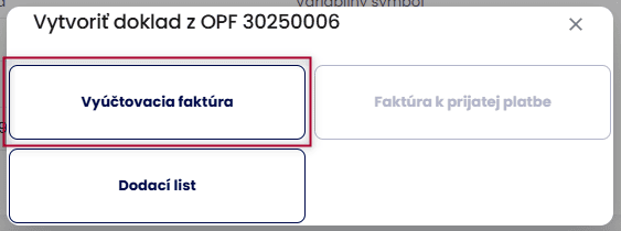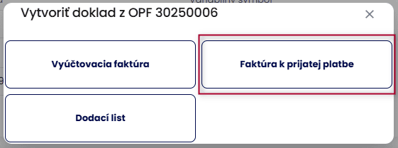 - krok: Vystavenie Faktúry k prijatej platbe/Vyúčtovacej faktúry